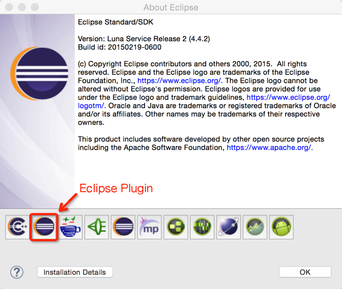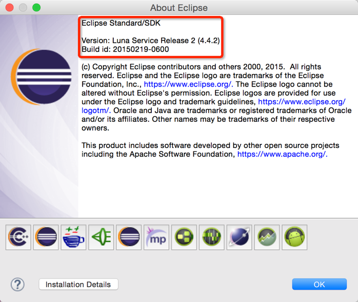 I. Откройте “About Eclipse”, чтобы проверить текущий номер версии.