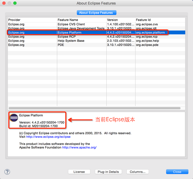 II. Если вы не можете найти подробный номер версии, найдите его в “Eclipse Plugin”.
