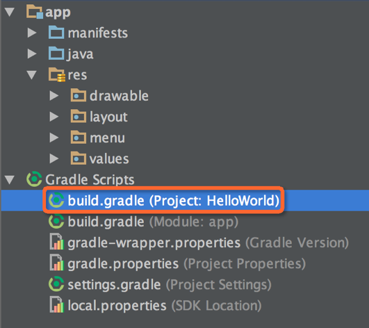 I. Откройте файл “build.gradle” (project) в корневом каталоге.