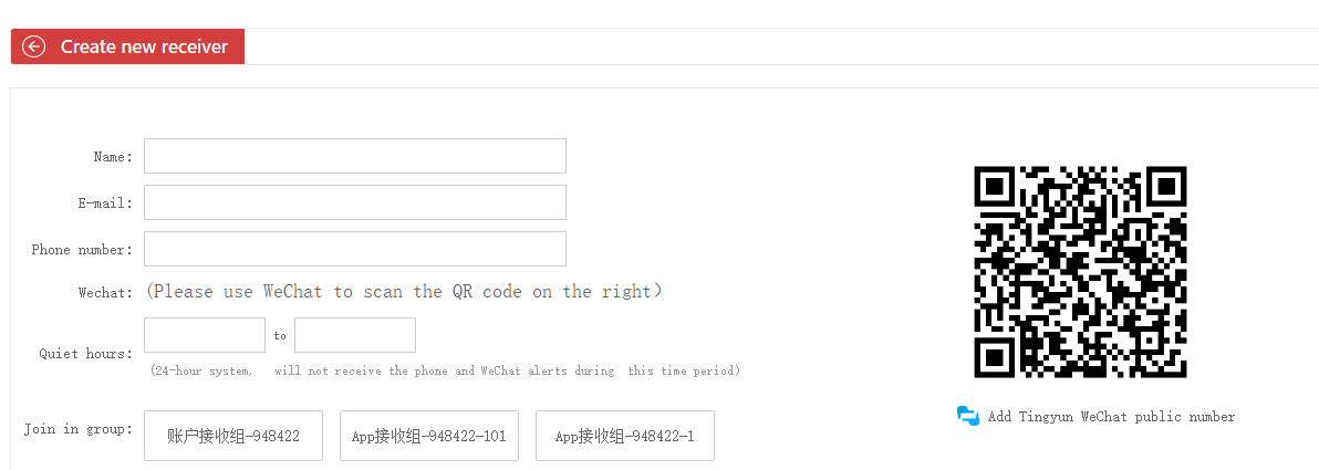 Нажмите [Создать получателя], перейдите на страницу создания получателя.