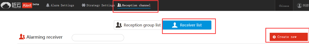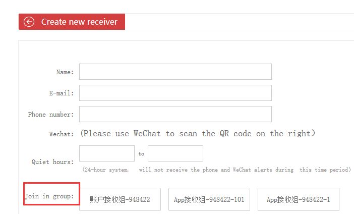 1、Откройте страницу оповещений Altynview, нажмите «Группа уведомлений», затем нажмите «Создать получателя уведомлений», чтобы перейти на страницу создания получателя уведомлений.