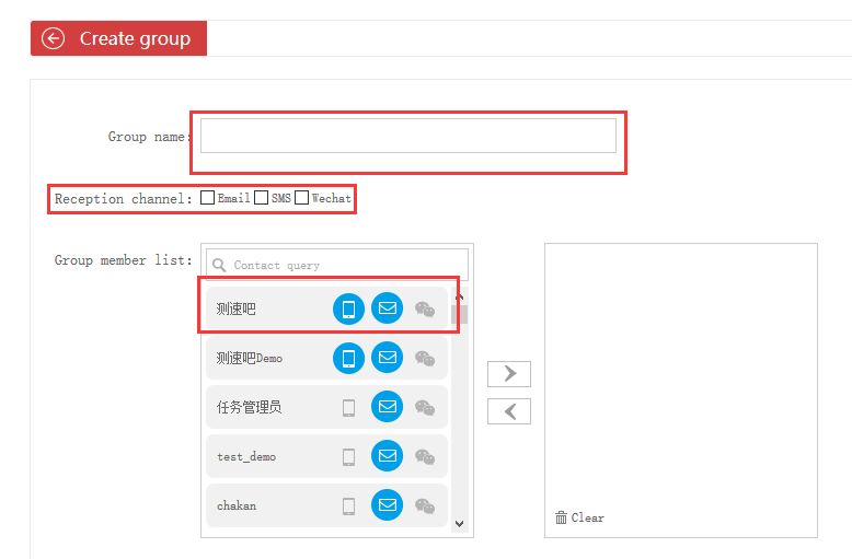 2、Укажите название группы, выберите каналы получения уведомлений (доступен множественный выбор), выберите получателей уведомлений, затем нажмите «Сохранить». Группа уведомлений будет создана.