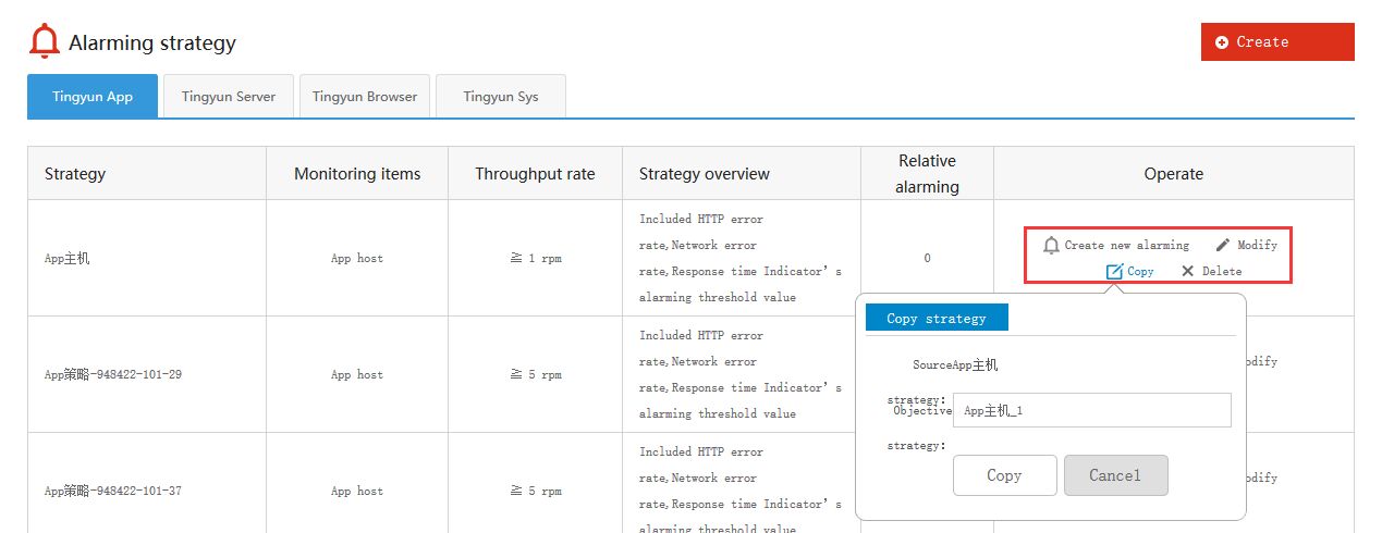 3、Для стратегий оповещений доступны операции «Копировать», «Изменить» и «Удалить», которые выполняются из списка стратегий. Выберите стратегию и выполните соответствующее действие.