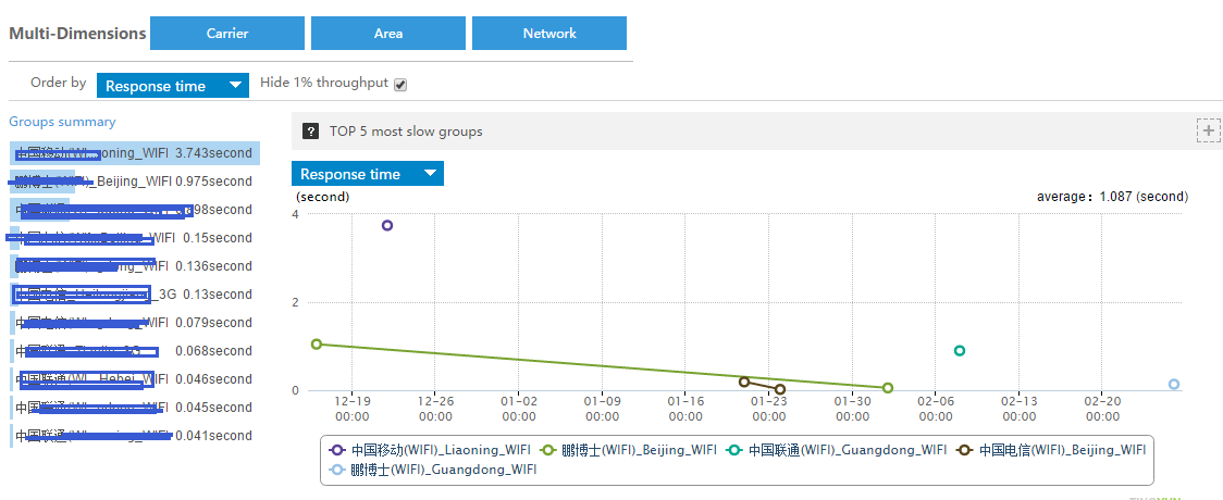 Комбинированный анализ: На основе данных различных комбинаций региона, оператора и способа доступа предоставляется анализ времени отклика приложения в региональном измерении для сети оператора и способа доступа. Также может предоставлять данные для эксплуатации и сопровождения, позволяя выполнять целевую оптимизацию данных.