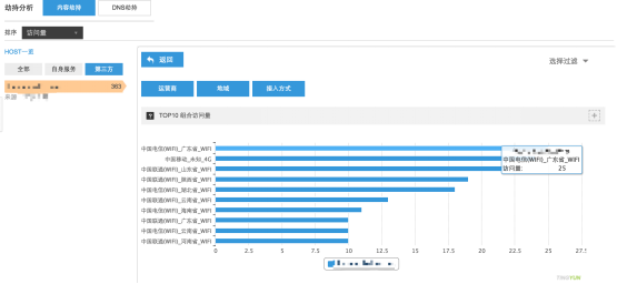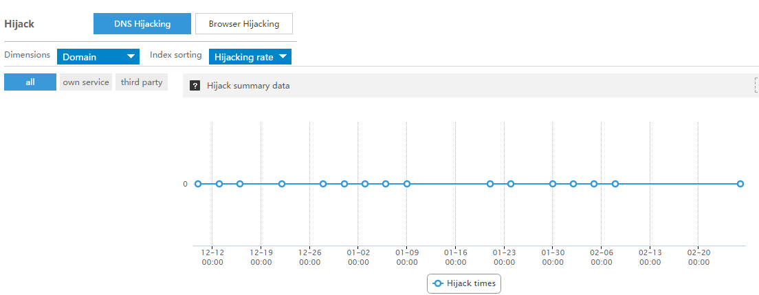 DNS-перехват: В региональном измерении можно просмотреть уровень DNS-перехвата (количество перехватов/количество запросов) в текущем регионе.