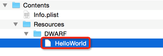 (1) Откройте терминал, перейдите в каталог HelloWorld.app.dSYM (расположение см. в описании метода 1) и выполните следующую команду: