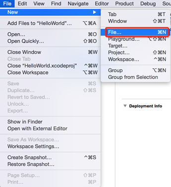 i. В Xcode выберите окно Project Navigator и поместите перетащенную иконку папки в группу папок “HelloWorld”.