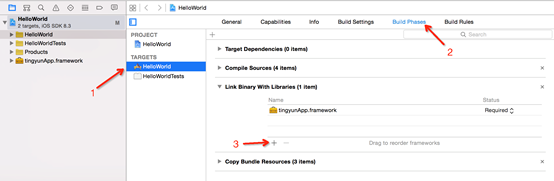 b) перейдите на страницу настроек “Build Phases”;