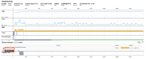Сетевые запросы: Система собирает следующие пять показателей производительности: время отклика приложения, время разрешения DNS, время установления TCP-соединения, время SSL-рукопожатия, время получения первого пакета.