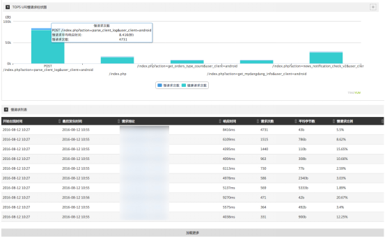 II. Межприложенческая трассировка медленных запросов: Если необходимо проанализировать серверную производительность для конкретного адреса медленного запроса, нажмите кросс-приложение (cross-application) в разделе межприложенческой трассировки, чтобы перейти в отчёт сервера.